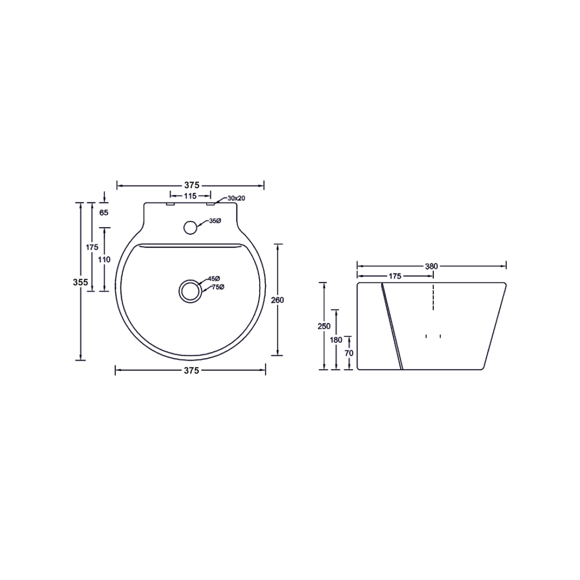 Landtech Celestial LT-112 Wall-Hung One-Piece Basin | 380×360×270 mm